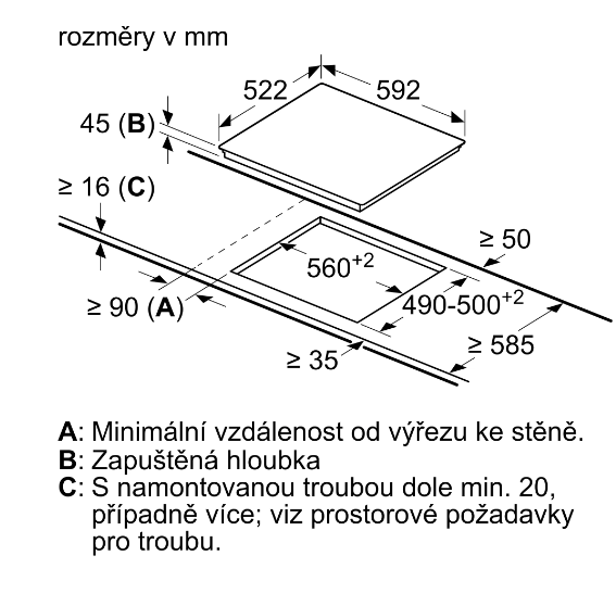 Rozměry varných zón